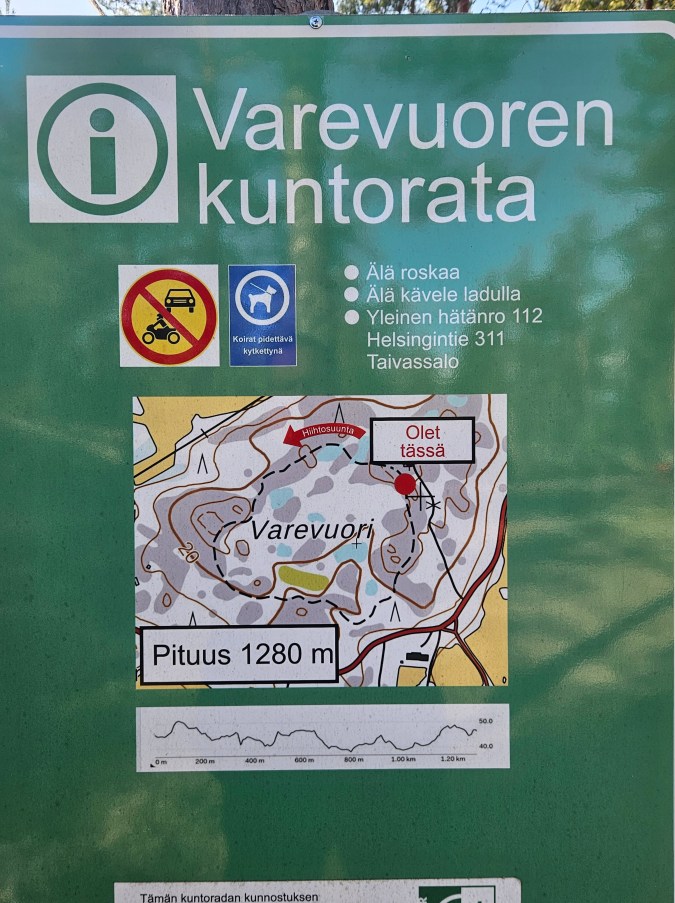 1,2 km helppo kulkuista rataa edessä, saa kiertää useampaankin kertaan.